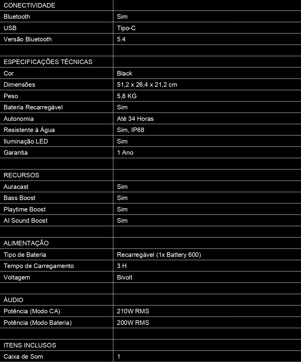 Equipado com Bluetooth 5.4, a Boombox 4 garante conexão rápida e estável com seu smartphone ou tablet para você tocar suas playlists favoritas sem interrupções.
